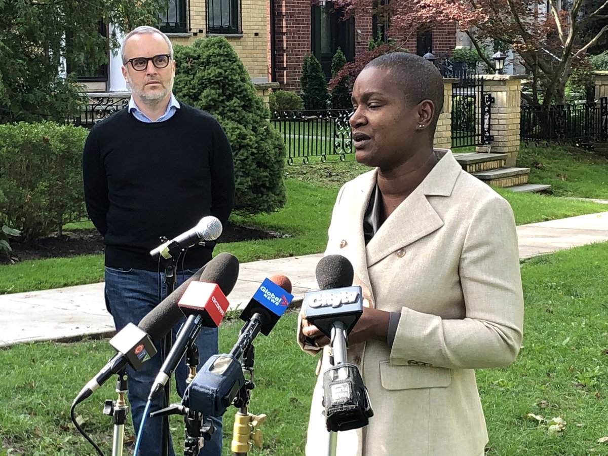 The climate crisis is a threat to our homes families and communities. Annamie Paul is photographed during a press conference announcing she is officially stepping down as Green Party leader at Suydam Park in.